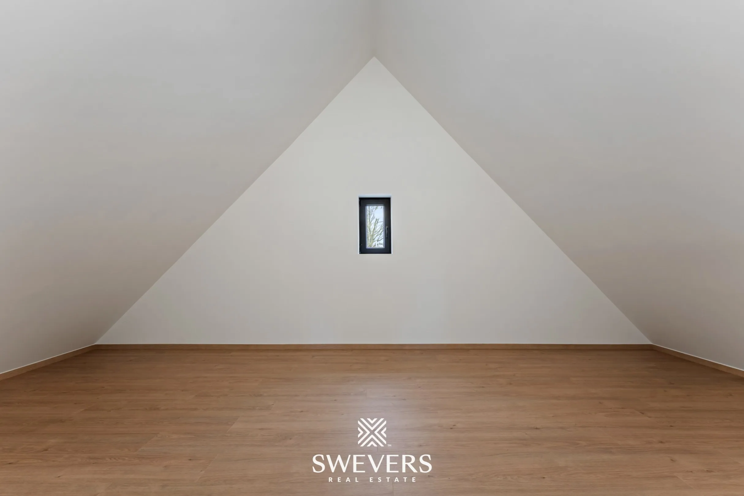 De woning telt vier volwaardige slaapkamers, elk met hun eigen karakter. Met oppervlaktes van 12,39 m², 14 m², 18,17 m² en een royale 38 m² is er ruimte voor iedereen. De grootste kamer op de tweede verdieping leent zich perfect als master bedroom met dressing of als combinatie van slaapkamer en hobbyruimte. Flexibiliteit troef.