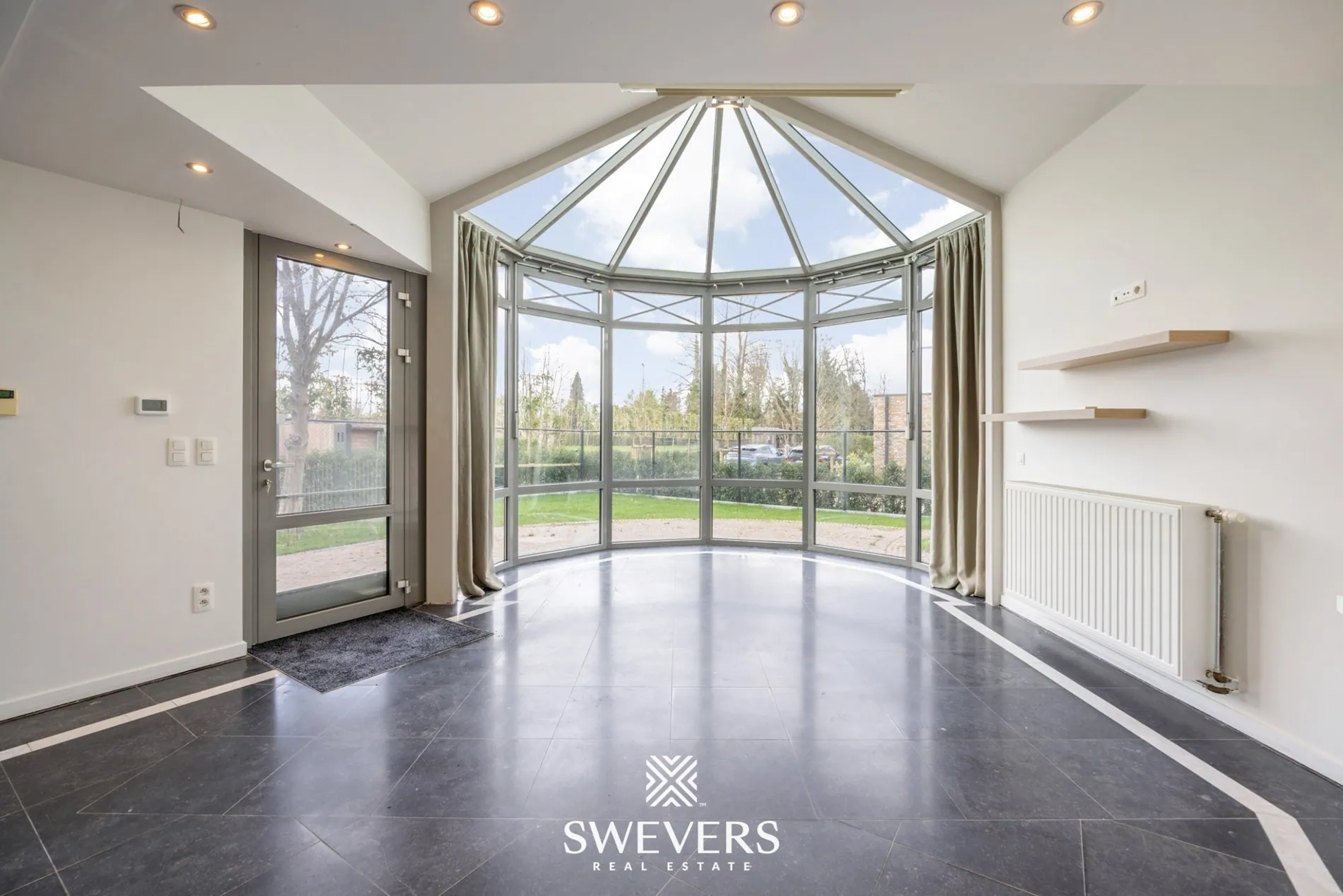 Op de tweede verdieping bevindt zich een zolder van maar liefst 77 m². Deze ruimte kan perfect dienen als master bedroom, hobbyruimte of extra werkplek. Ook hier werd airconditioning voorzien, wat het comfort tijdens warme zomerdagen verhoogt. Door de rustige ligging op deze verdieping ontstaat een aangename en private sfeer. De ruimte biedt extra mogelijkheden voor stockage of verdere inrichting afhankelijk van de noden van de bewoners. De woning is bovendien uitgerust met ingebouwde wandkasten in verschillende ruimtes, wat zorgt voor een nette en efficiënte opbergruimte. De ramen zijn voorzien van rolgordijnen.